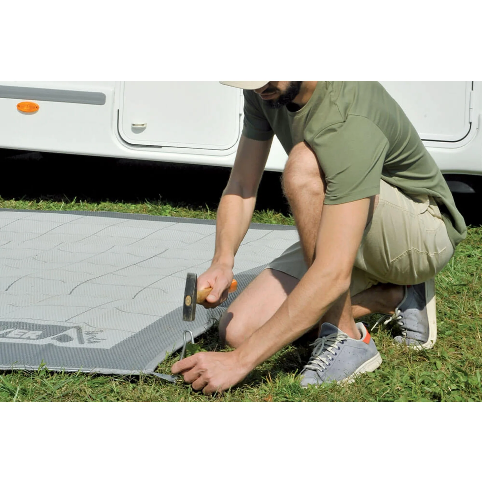 Tappeto da campeggio ideale per l’isolamento al suolo dell’ambiente veranda. In speciale tessuto in polipropilene a trama fitta impedisce il passaggio di insetti e impurità dal suolo, senza però danneggiare l’eventuale manto erboso con cui è a contatto. Stabile al suolo grazie ai 4 punti di ancoraggio angolari. Leggero, versatile e traspirante asciuga velocemente in caso di umidità impedendo la formazione di muffa. Velocissimo da pulire con un semplice getto d’acqua. Con stampa double face può essere posato su entrambi i lati. La resistenza ai raggi UV mantiene inalterati nel tempo i colori e le caratteristiche tecniche. Pratico e poco ingombrante si ripiega facilmente. Custodia per il trasporto inclusa.