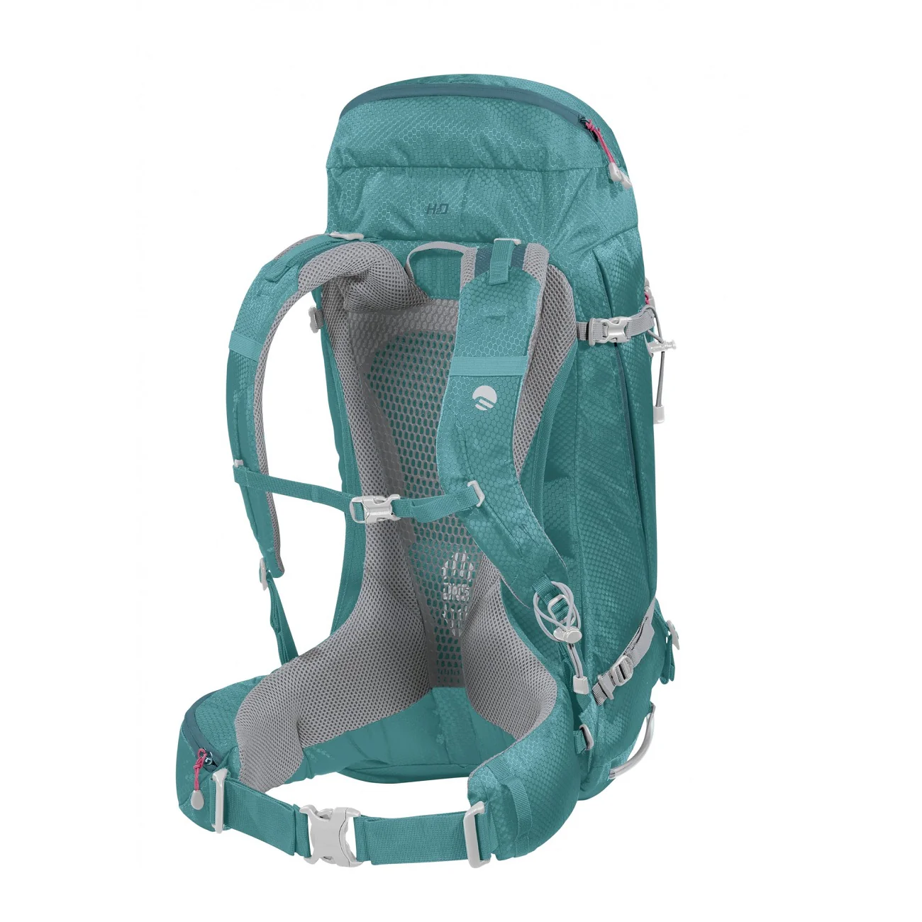 - Dorso: Dorso con sistema "Dry Net System", la cui traspirazione è garantita dal tessuto reticolare, mentre la distribuzione del carico e la stabilità nel trasporto sono ottimizzate grazie al bastino in acciaio flessibile | Spallacci e fascia a vita ergonomici per la morfologia femminile